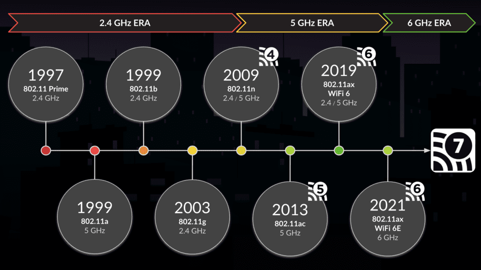 To better understand Wi-Fi 7, let’s take a look at the progression of recent Wi-Fi standards: